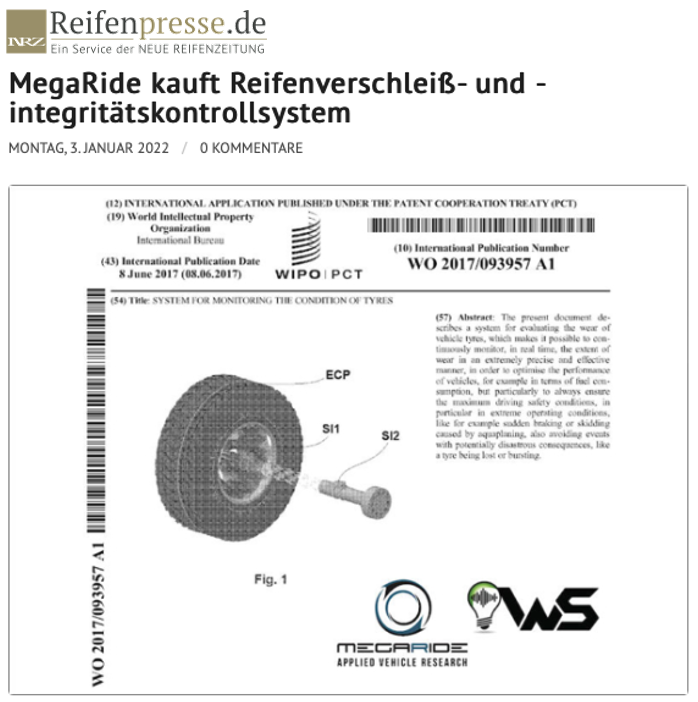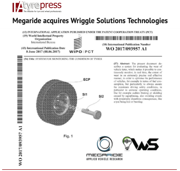 Megaride expands and completes its line-up of proprietary solutions for the tyre and automotive industry, thanks to the acquisition of tyre wear and integrity monitoring systems developed by Wriggle.